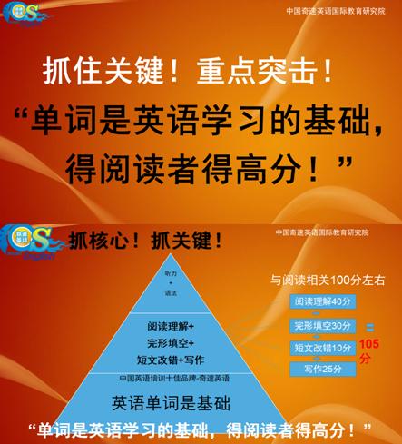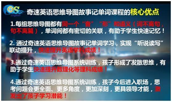 奇速英语抓准了中高考快速涨分的核心和关键:单词和阅读。研发了获国家专利的思维导图&24个故事7天速记3年单词课程和快速阅读课。