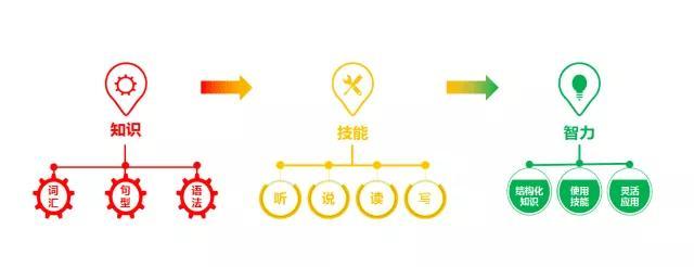 第三步是能应对各种天气、路况、车型,最终实现驾驶自如,即有了灵活运用英语知识和技能的智力,从而达到熟练输出语言的目的。具体如下图所示: