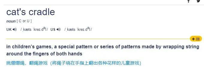 其实 cat's cradle 还有另外一层含义,就是小时候女生爱玩的翻花绳。