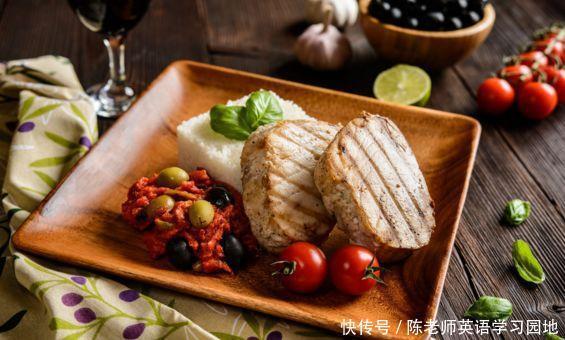 2.如汤汁或蘸料和主料是分开的,或是后浇在主菜上的,则用with连接。