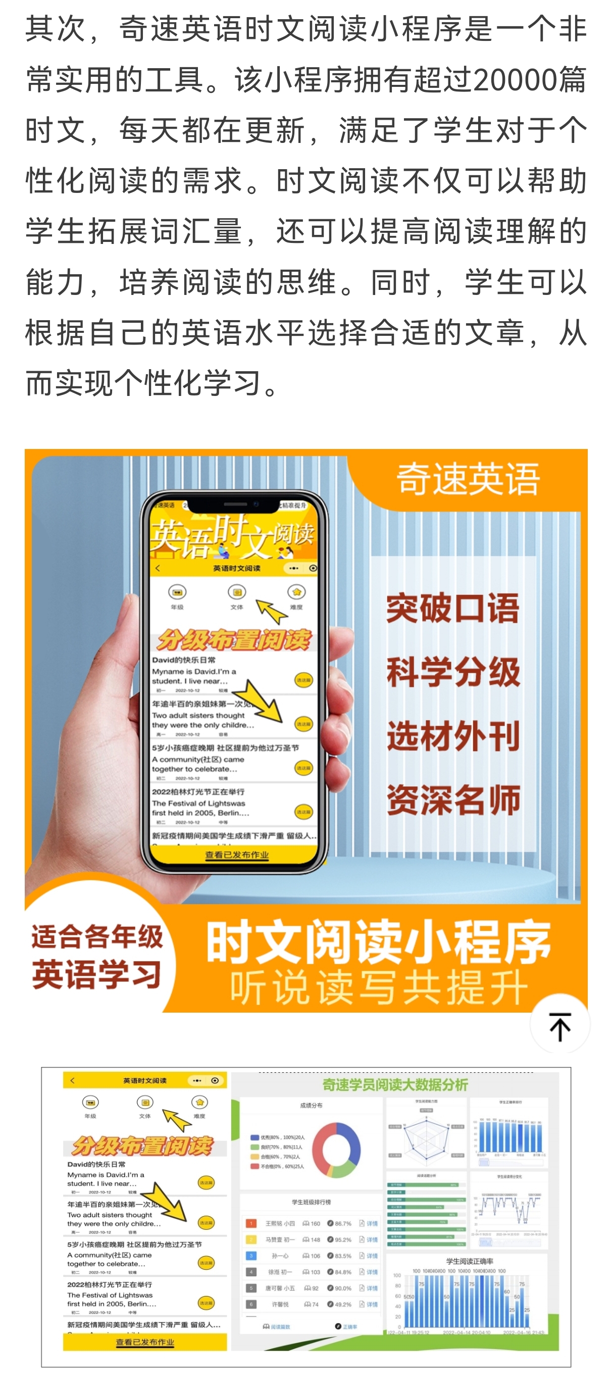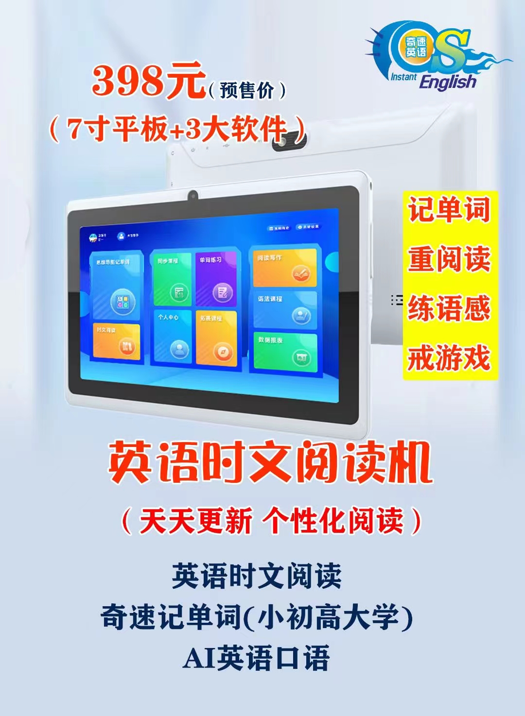 现在,你购买时奇速时文阅读机,免费使用这款单词机软件,轻松记忆英语单词,与教材同步,覆盖小学、初中和高中各个阶段。如果你想进一步提高自己的英语阅读和听说能力,不妨考虑购买我们的时文阅读机,让学习变得更加轻松愉快。