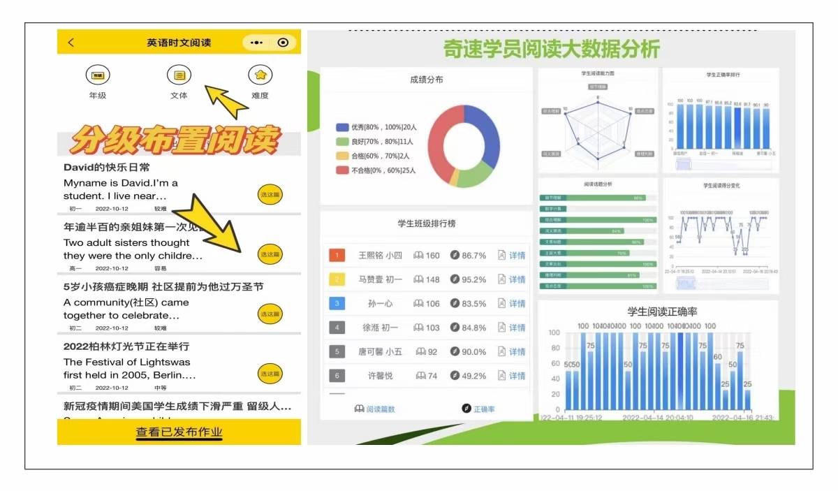 而现在非常火爆的奇速英语时文阅读机(小程序),平台上有20000篇名师原创英语时文,它每天都会更新文章,可以根据孩子的兴趣爱好和英语水平个性化定制阅读,这就避免了文章过难或过于简单的问题,让孩子在阅读中获得成就感,激发他们的阅读兴趣。