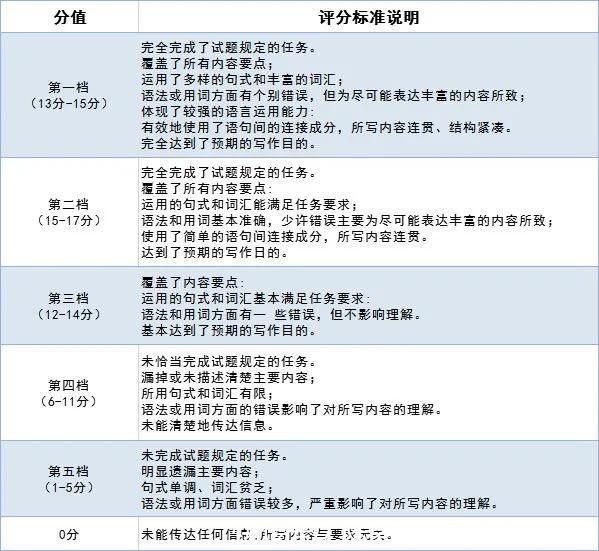 2. 评分时,先根据文章的内容和语言质量初步确定其档次,然后以该档次的要求来衡量,确定或调整档次,.